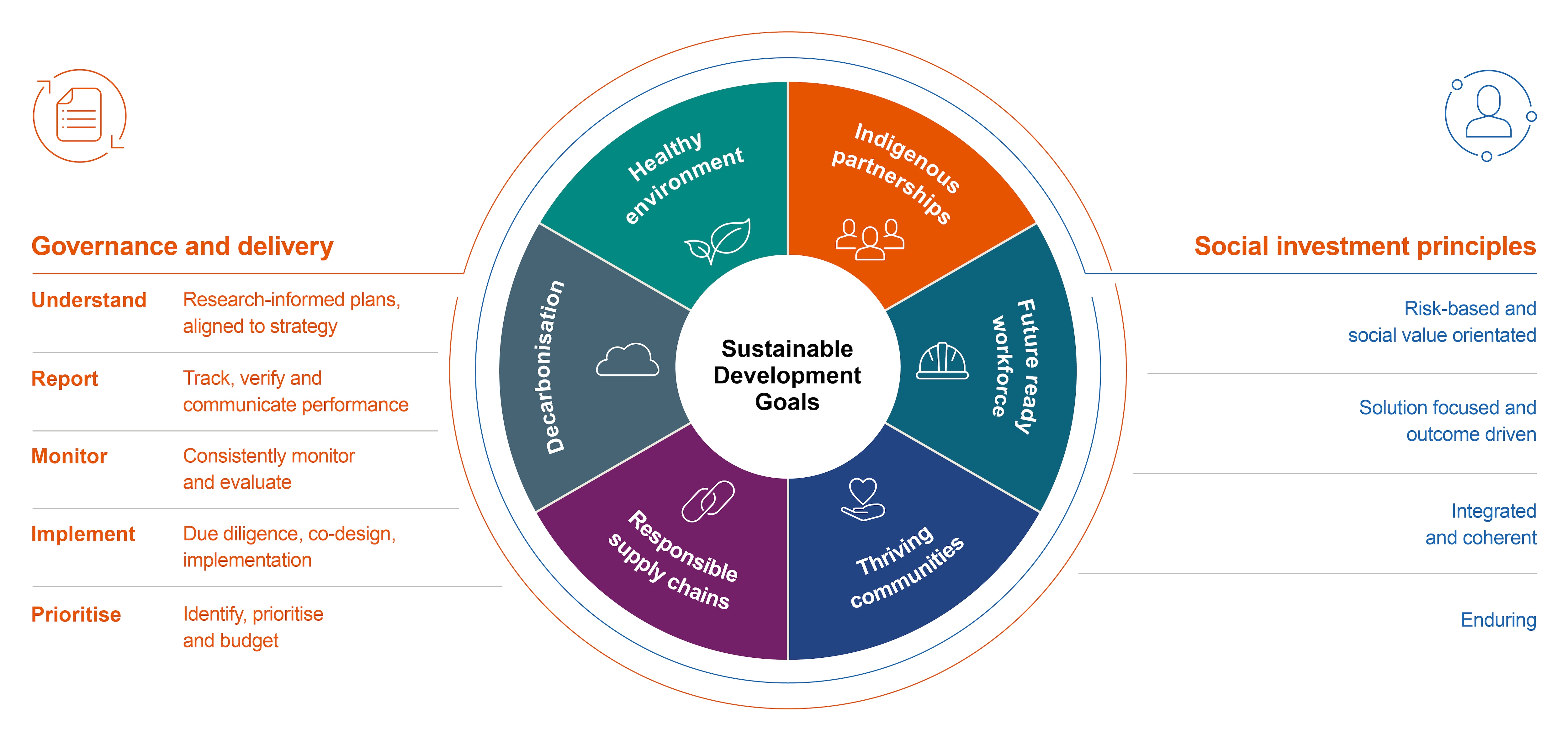 Our total social investment is internally monitored and verified each quarter, then externally assured annually and publicly disclosed in our Annual Report and Economic Contribution Report, and as relevant in our Modern Slavery Statement and Australian Indigenous Social Investment Report. -
