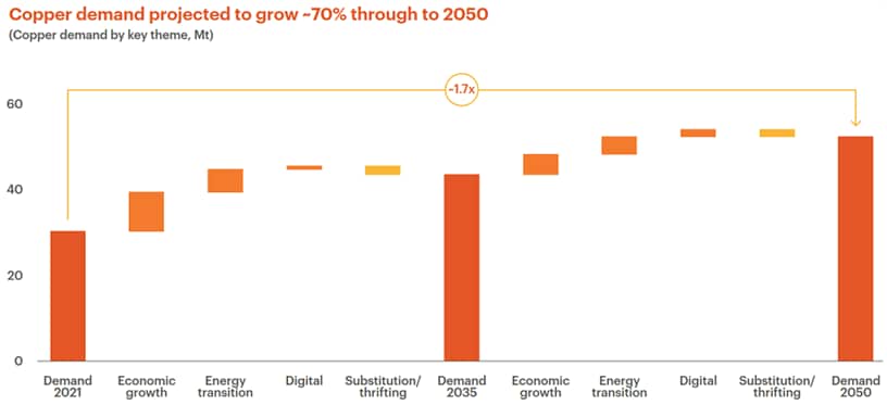 That's important because global copper demand is expected to grow from around 34 million tonnes a year today to more than 50 million tonnes a year by 2050.